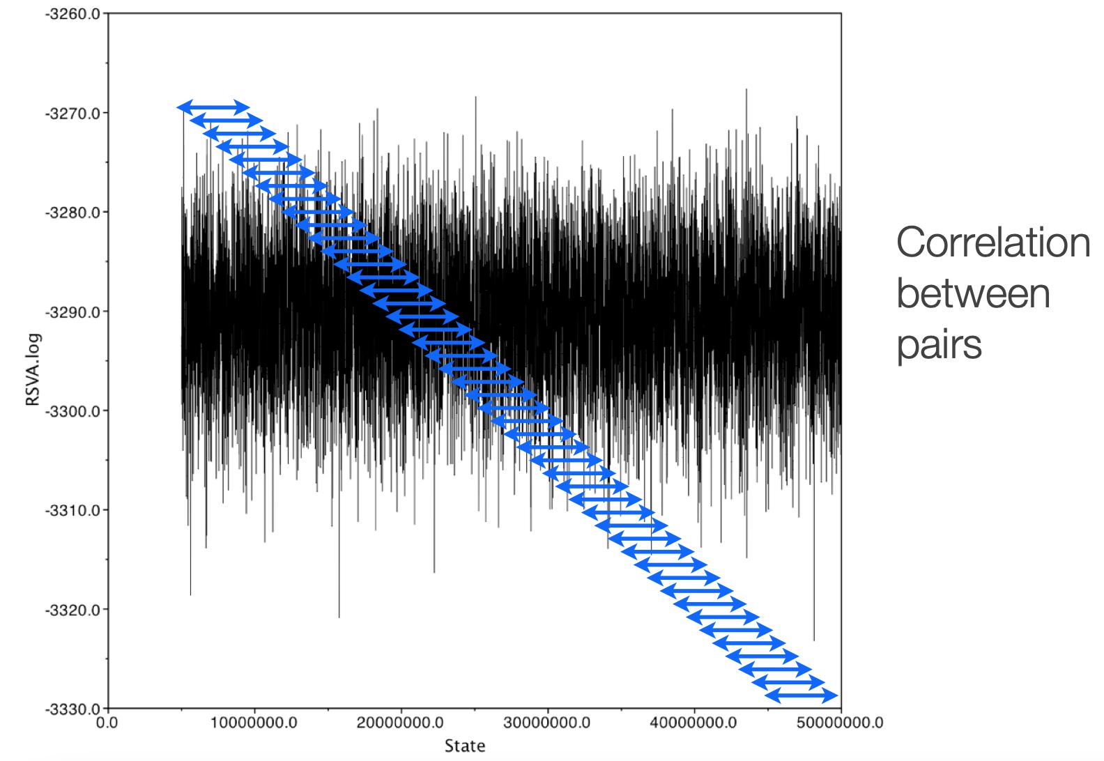 Recall: we thin chains because two adjacent samples are extremely correlated