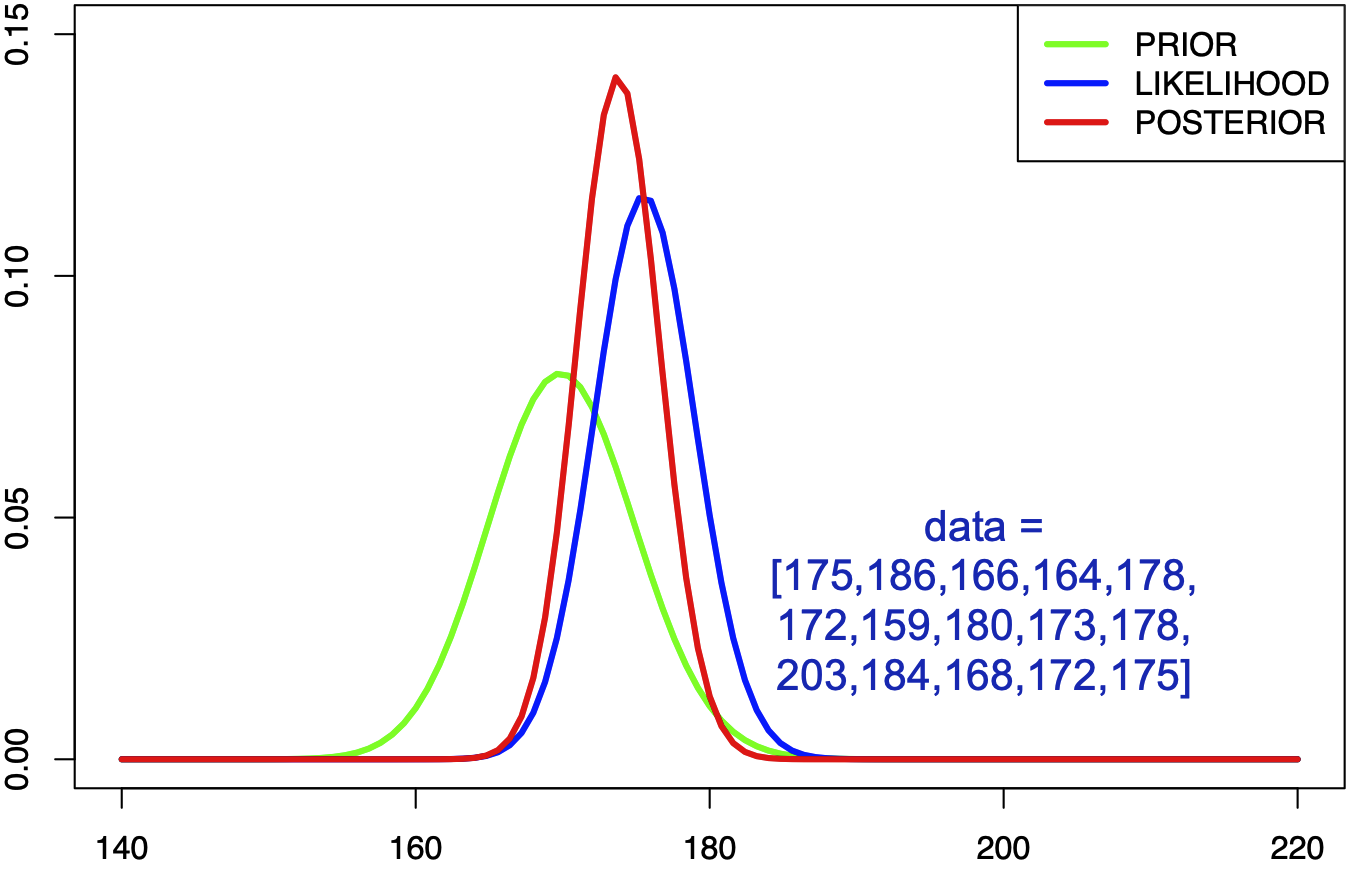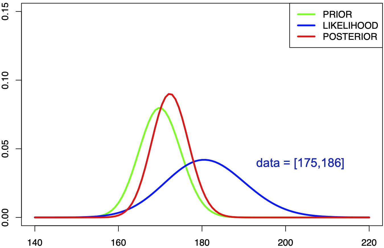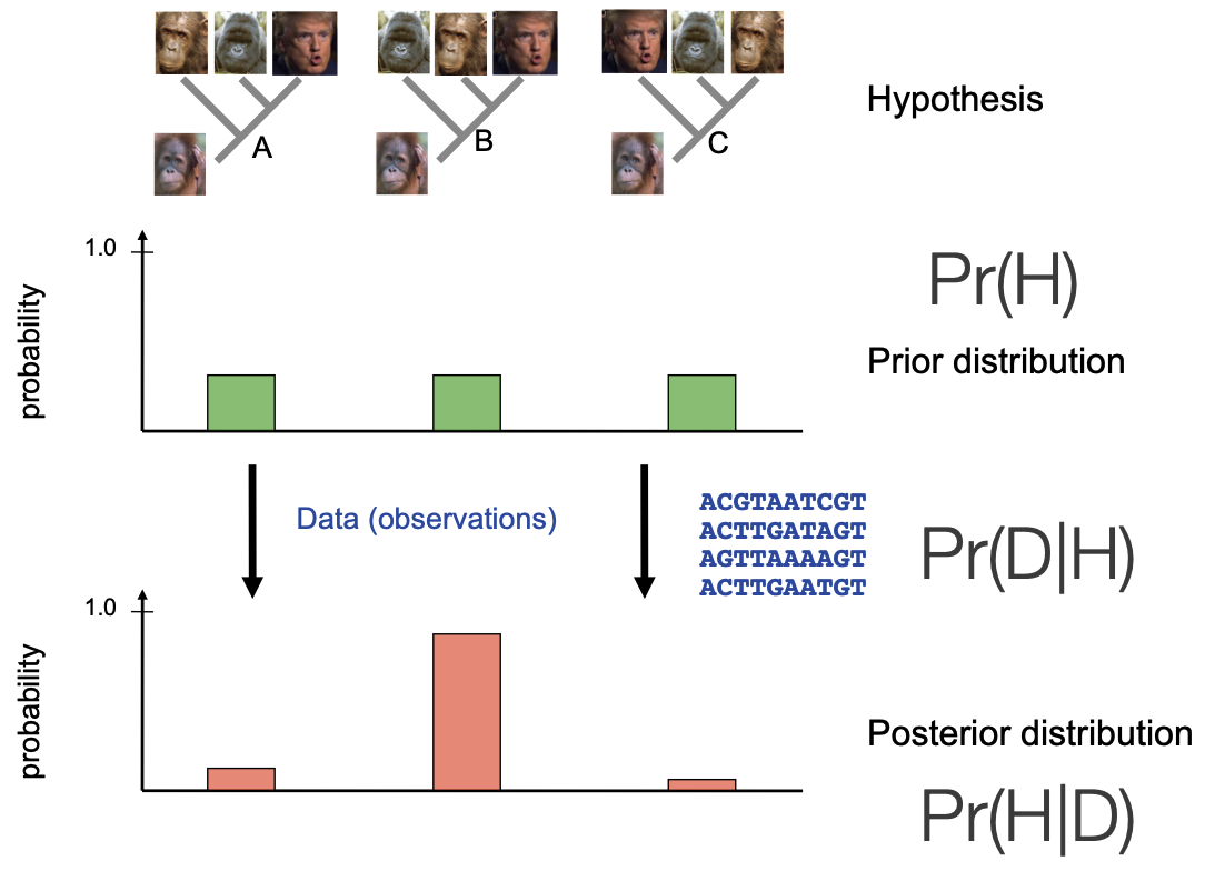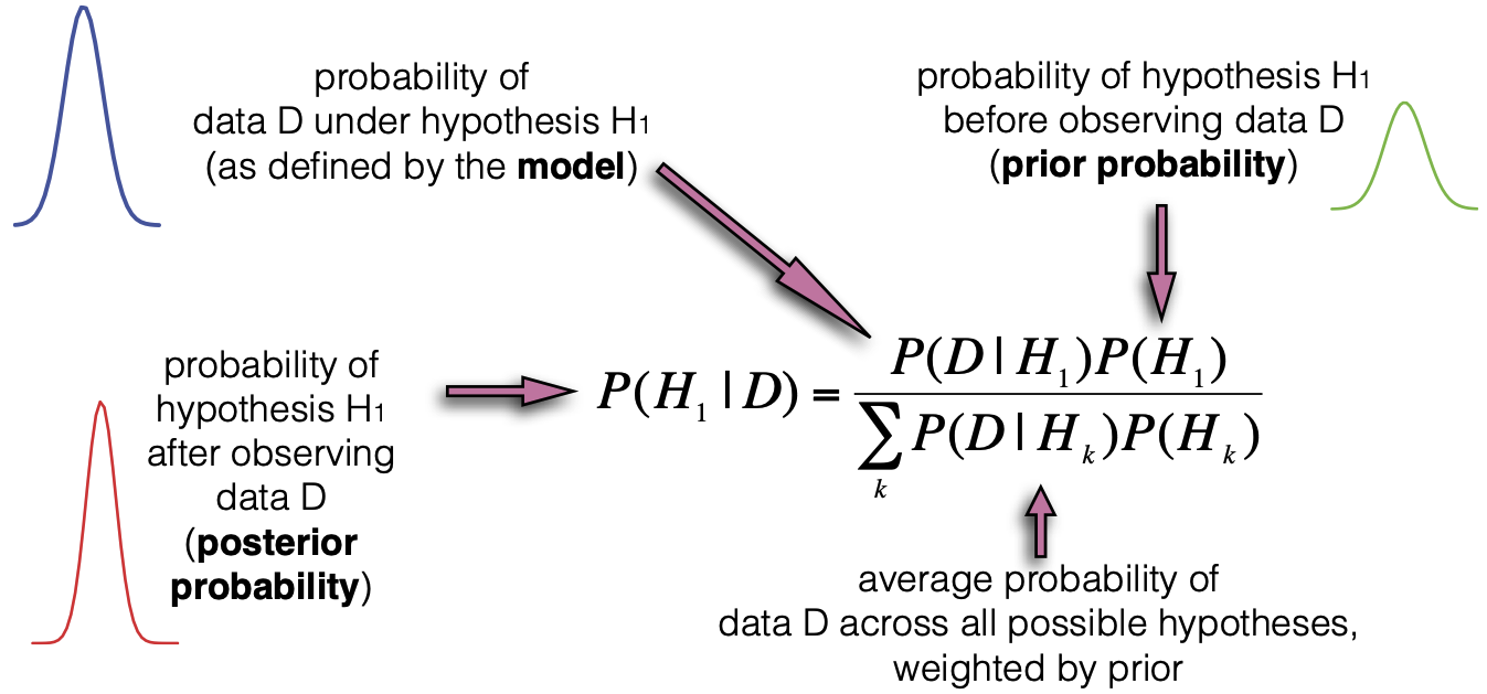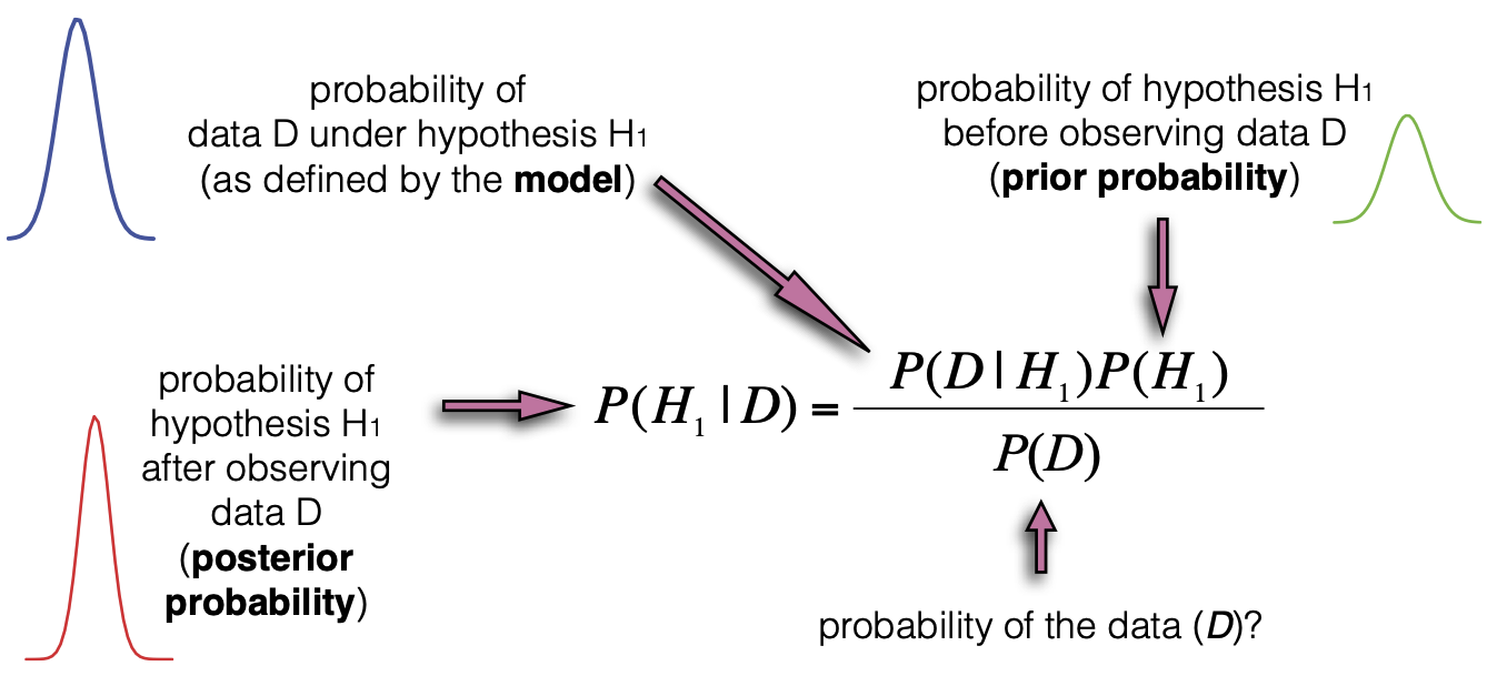 P(H_1|\textbf{D}) = \frac{P(\textbf{D} |H_1) \times P(H_1 )}{P(\textbf{D})}