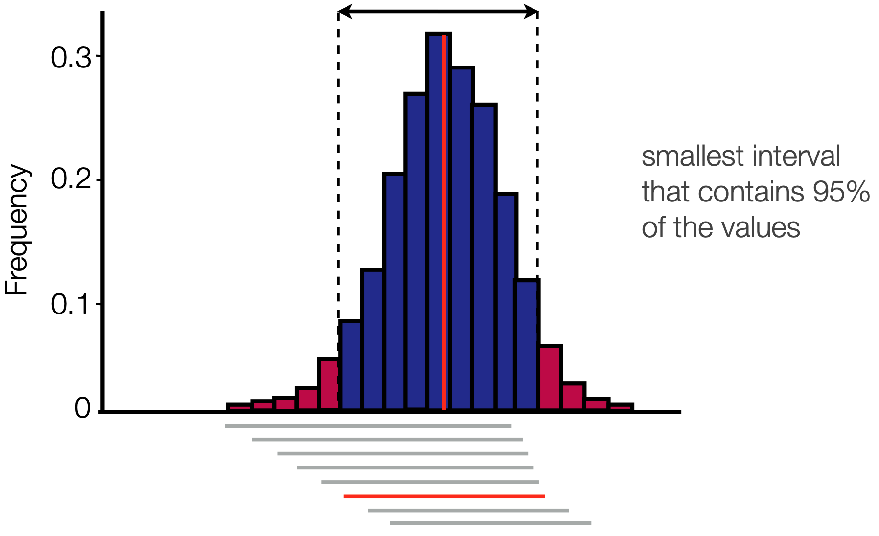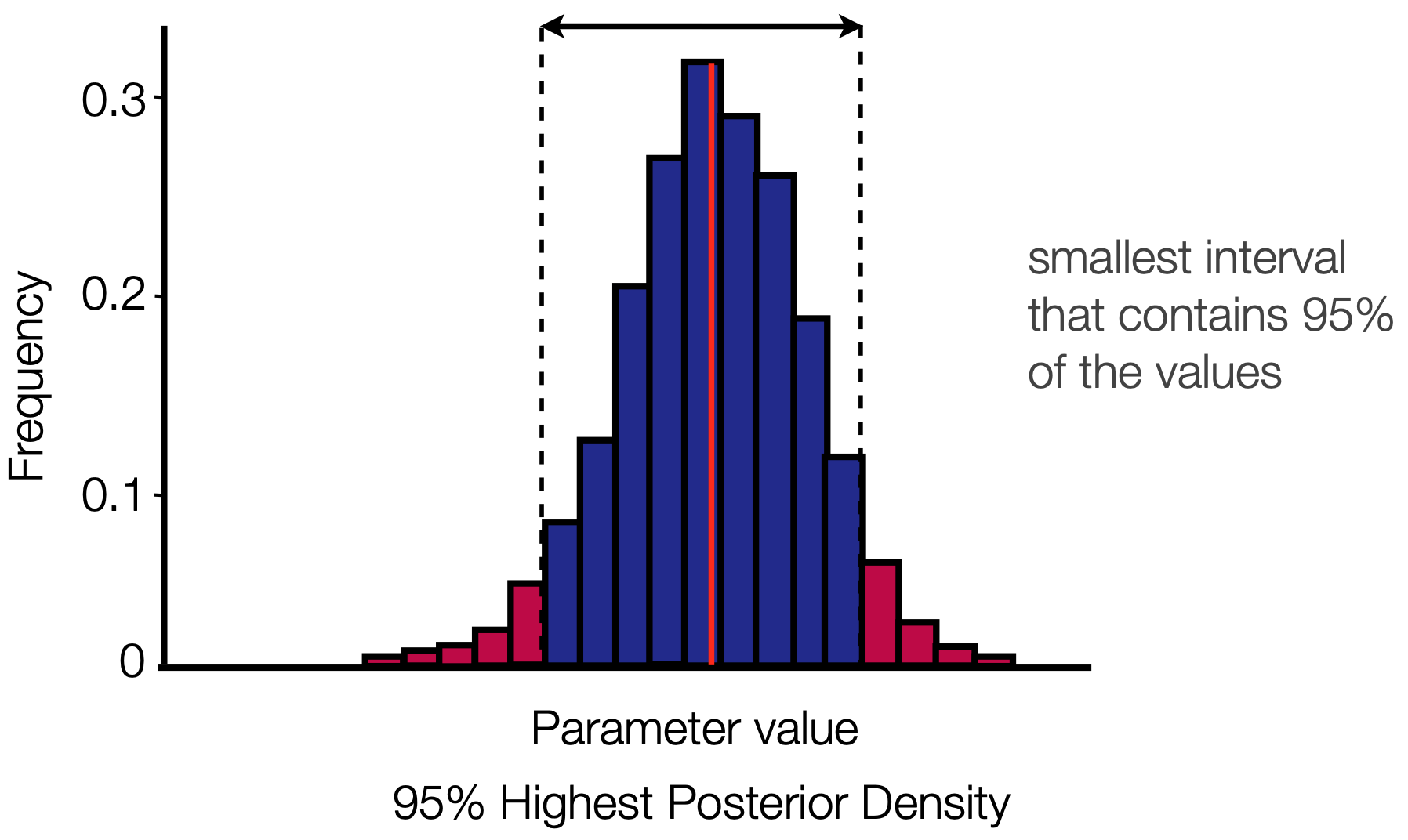 We can numerically approximate the full calculation by taking samples from the posterior distribution. If those samples are taken proportional to their posterior probability then we can summarize the samples to summarize the posterior.