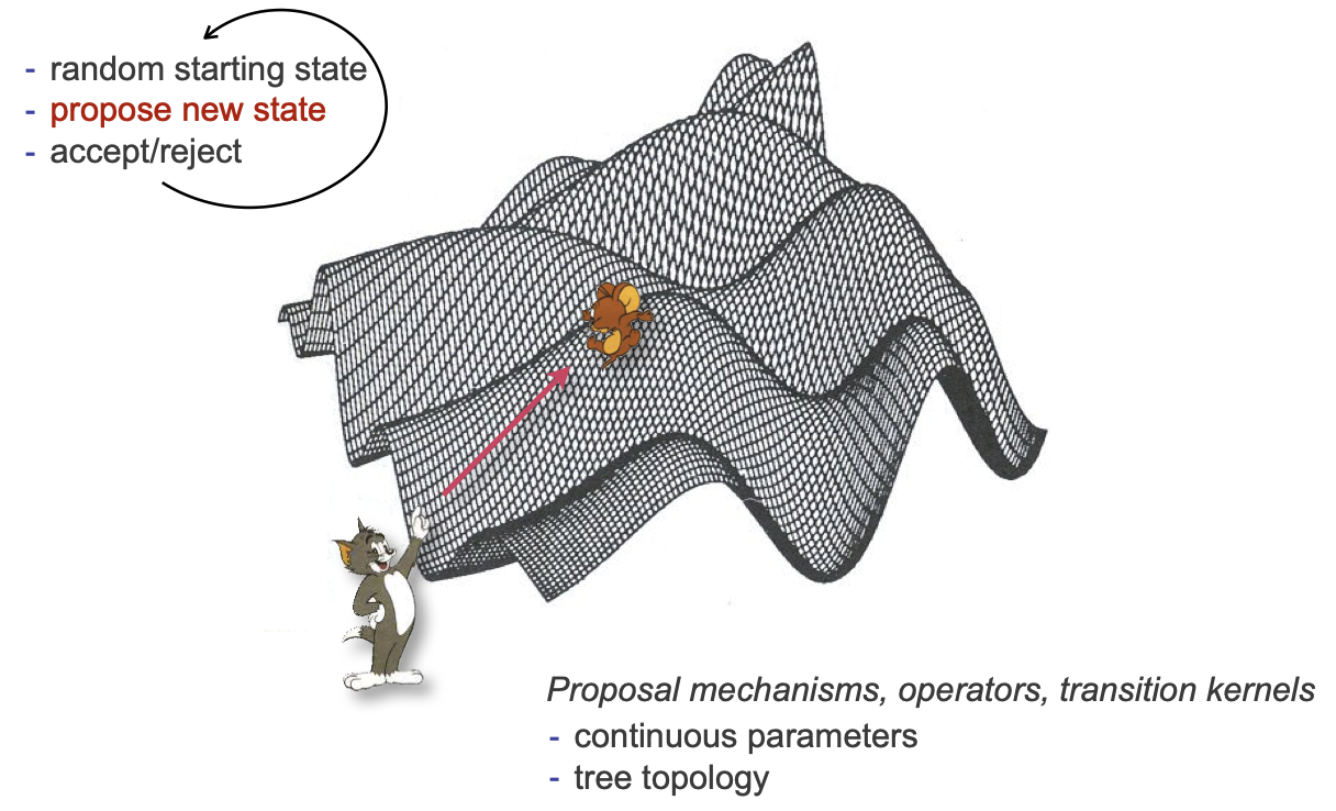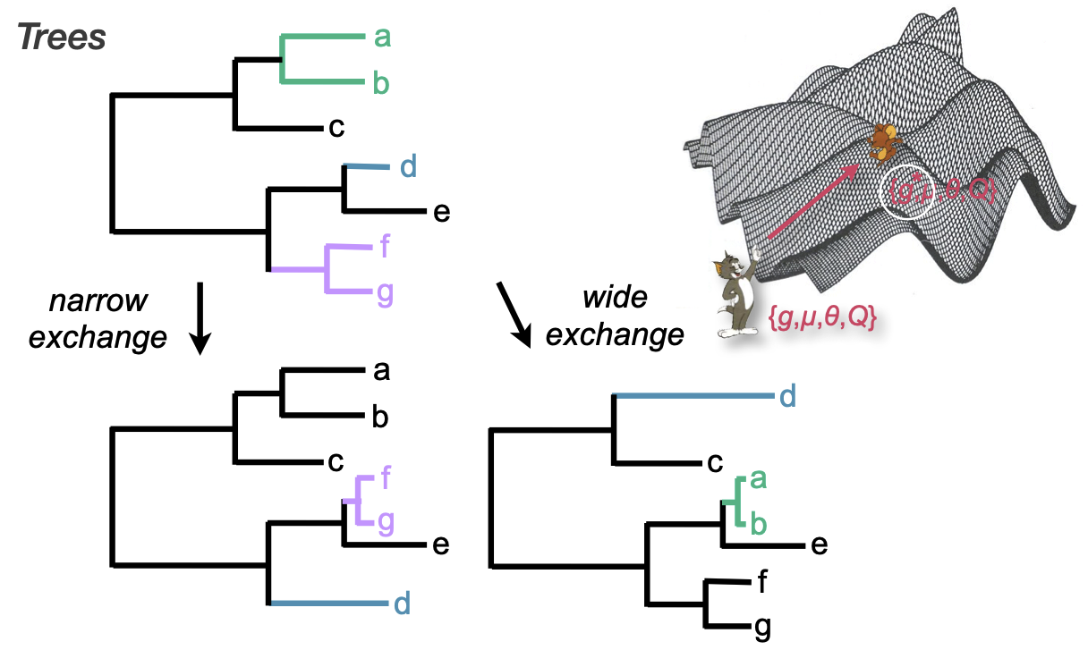 Recall: our state tau=tree, nu=branch lengths, Theta=model parameters