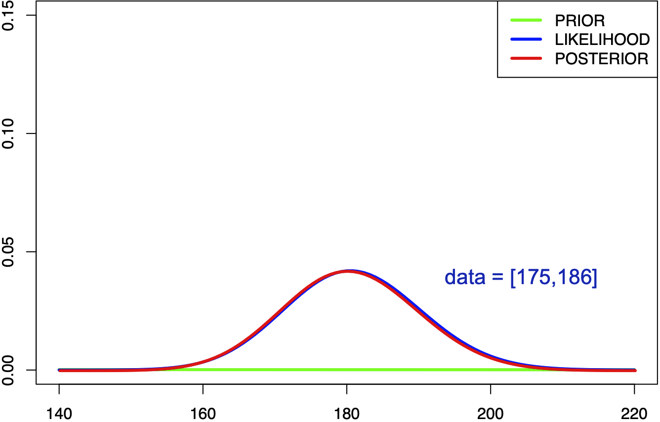 Technically proper, but extremely uninformative prior means that the data provide all the information